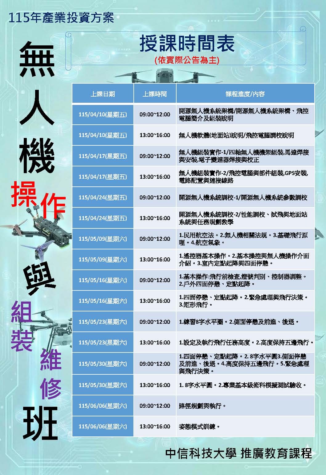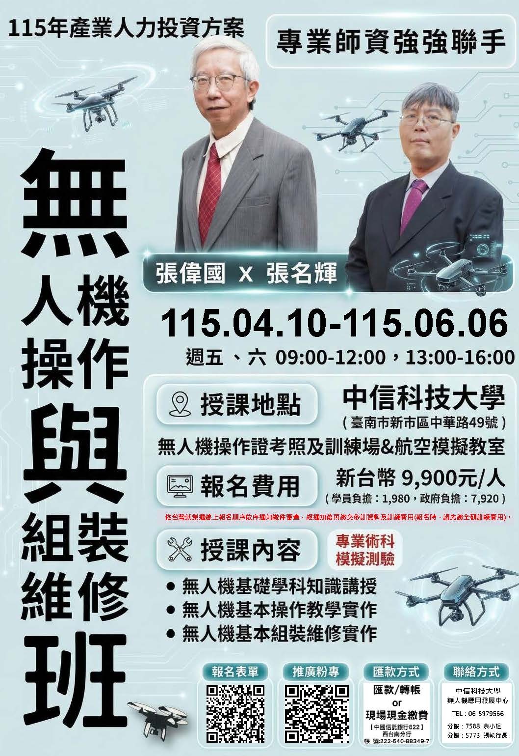 115年無人機操作與組裝維修班-報名中